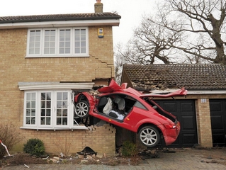 英国一奥迪跑车冲进建筑 破墙而入场面惨烈