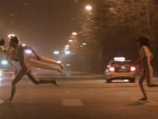 北京现裸奔男女 全裸男夹充气娃娃裸女狂追