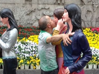 成都春熙路现“奇葩男”舌吻女雕塑动作猥琐