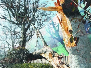 集装箱大货冲进逆行道 拦腰斩断老法桐