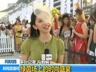 央视女记者戴蕾丝帽播新闻 妩媚靓丽获好评