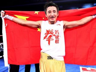 邹市明获职业拳坛处子战胜利 披国旗庆祝