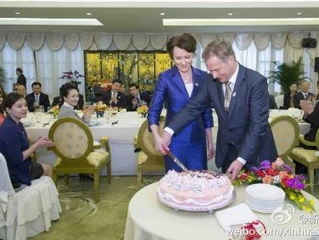 习近平和彭丽媛给芬兰总统夫人送生日蛋糕