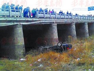 60岁老人驾车躲避大货撞断护栏冲下桥