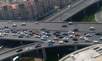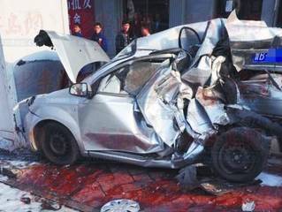 越野车司机捡东西 踩到油门将雪佛兰撞扁