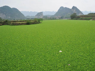 水生植物爆发盖河道 广西清水河变“草坪”