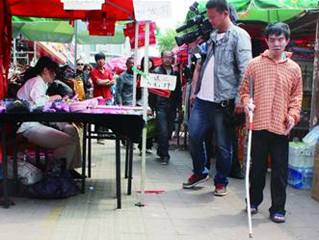 盲人走人行道半小时碰11辆车 盲道如虚设