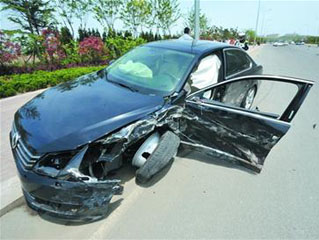 帕萨特思域迎面相撞 车轮成飞碟甩出20米