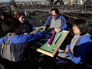 四名华人在134米高悉尼大桥顶上打麻将(图)