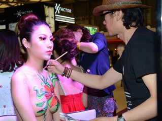 第18届美博会开幕 模特全裸彩绘吸引眼球
