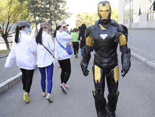 长春大学生扮钢铁侠街头摆酷 回头率十足