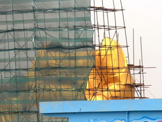 洛阳大背头弥勒佛“整容” 头部已被移走