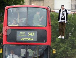 魔术师单手“悬浮”巴士 表演“违反常理”