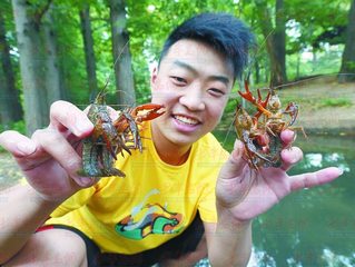 小龙虾跳进中山公园小西湖 十多分钟抓20只