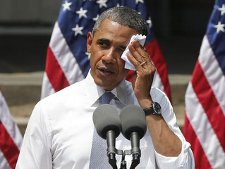 奥巴马就气候变化发表演讲 天气炎热狂擦汗