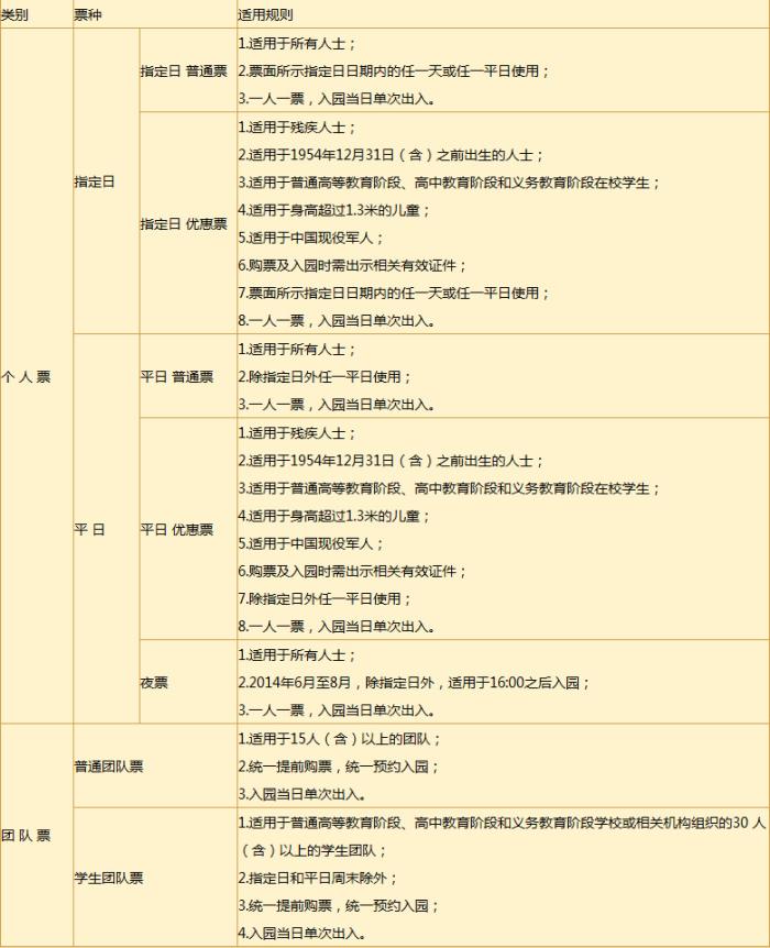 二、关于门票种类和适用规则