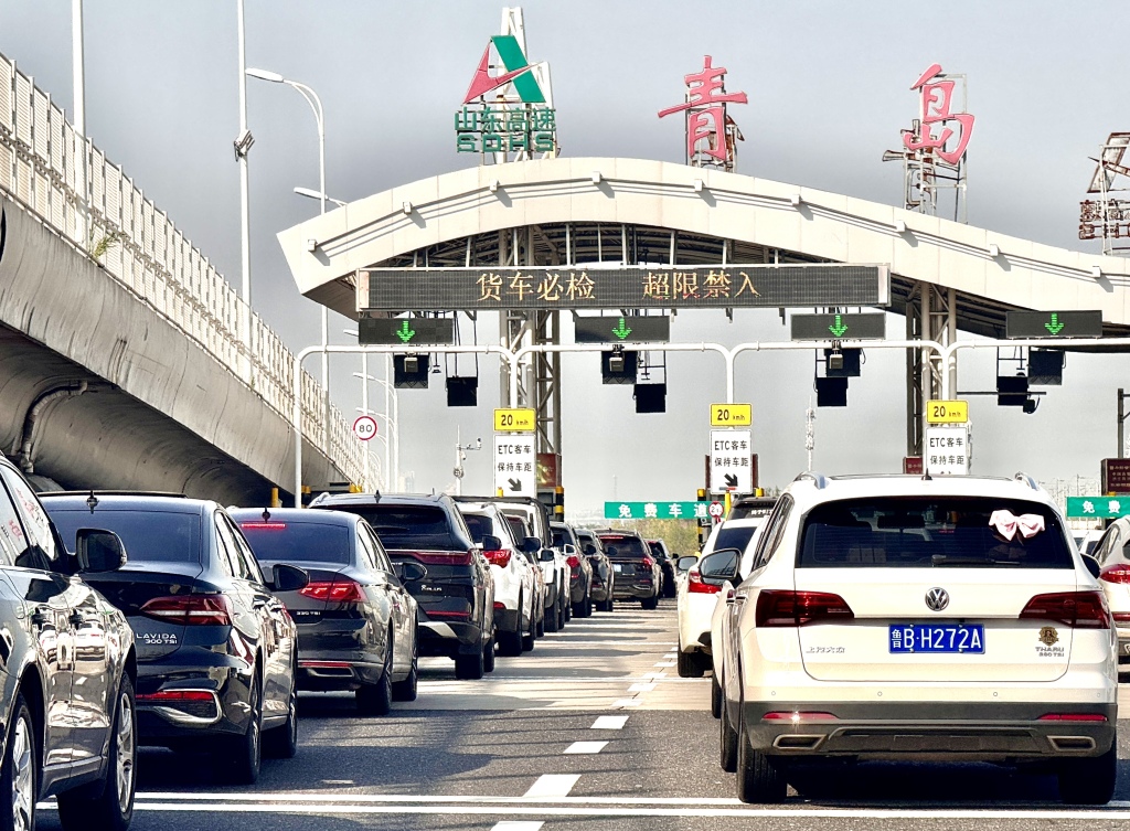 10月1日,假期正式开启,青岛迎来首轮出行高峰。当日一早,市内环湾路车流量便呈骤增态势,各高速路口出市方向更是出现明显车流集中现象,车辆在引导下排起长龙,整体通行秩序井然。