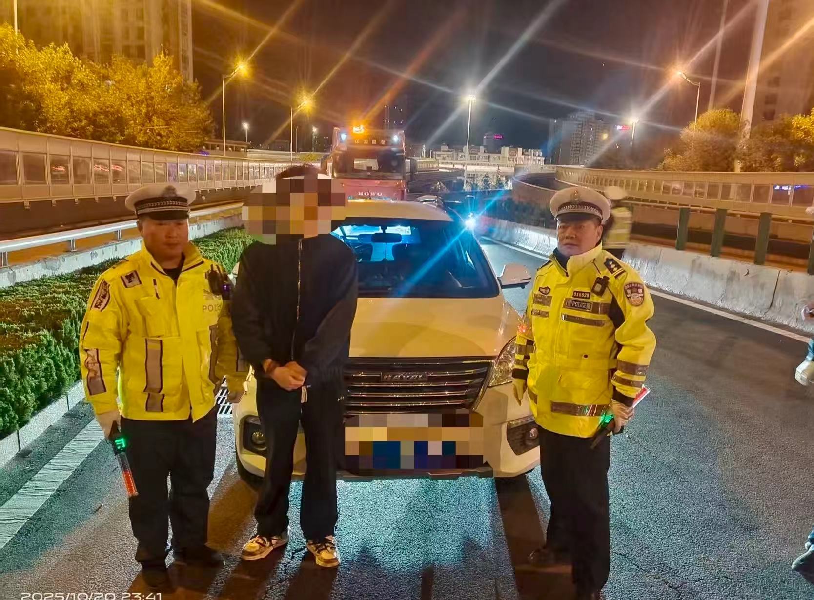10月20日晚23时44分许,公安交管市南区大队文登路中队警力与特警警力在福州路与安庆路路口开展夜查行动时,再次查获一起醉驾案件。民警对一辆黑色小型越野车进行检测时,驾驶人神色慌张,经呼气式酒精检测结果为153mg/100mL,驾驶人涉嫌醉酒驾驶。随后,民警将当事人带至医院进行抽血检验,目前,该案件正在进一步调查处理当中。