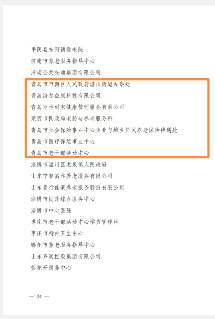 获评全国“敬老文明号”的青岛集体包括:青岛市市南区湛山街道办事处、青岛海尔益康科技有限公司、青岛万林到家健康管理服务有限公司、莱西市民政局老龄与养老服务科、青岛市社会保险事业中心企业与城乡居民养老保险待遇处、青岛市医疗保险事业中心、青岛市老干部活动中心。
