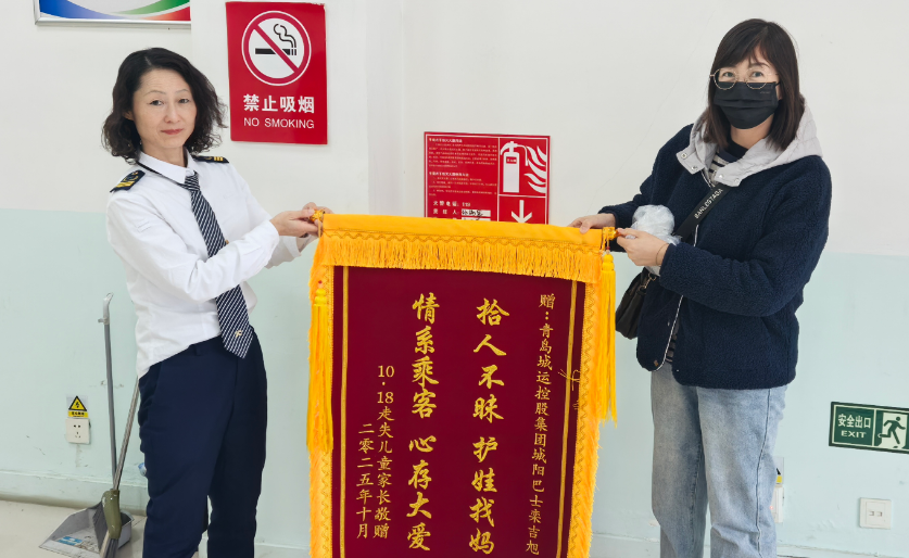 QMG青岛广电10月31日讯 一面绣字锦旗,承载着满心感激;一封亲笔感谢信,书写着双向温暖。10 月 20 日,一位家长专程来到青岛城运控股城阳巴士公司天山一路场站,将这份沉甸甸的感谢送到工作人员手中,只为向 775 路驾驶员栾吉旭师傅道一声谢 —— 感谢他在关键时刻伸出援手,帮迷路的孩子平安找到家人。