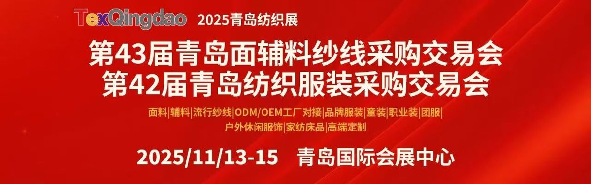 4.活动名称:2025第43届青岛面辅料纱线采购交易会(青岛秋季纺织展);举办时间:11月13日-15日;举办地点:青岛国际会展中心