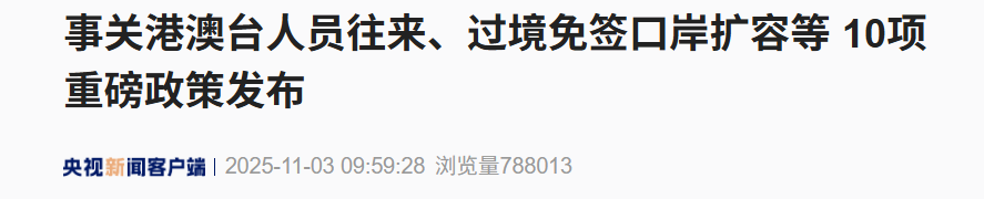 自2025年11月20日起,将可签发一次有效台湾居民来往大陆通行证的口岸范围由现有58个增加至100个。未持有效来往大陆出入境证件的台湾居民抵达口岸时,可向口岸公安机关出入境管理机构申请办理一次有效台湾居民来往大陆通行证,经批准后即可领取证件入境。42个新增口岸名单如下:天津港、满洲里(机场)、满洲里(公路)、二连浩特(铁路)、二连浩特(公路)、丹东港、营口港、珲春(公路)、黑河(港口)、同江(港口)、抚远港、饶河港、萝北港、东宁、绥芬河(公路)、连云港港、烟台港、日照港、威海港、石岛港、龙眼港、广州琶洲客运港、蛇口港、皇岗、罗湖、珠海港、横琴、港珠澳大桥、拱北、中山港、汕头港、揭阳潮汕机场、友谊关、东兴、丽江三义机场、磨憨(铁路)、磨憨(公路)、河口(公路)、兰州中川机场、敦煌莫高机场、喀什徕宁机场、霍尔果斯(公路)。