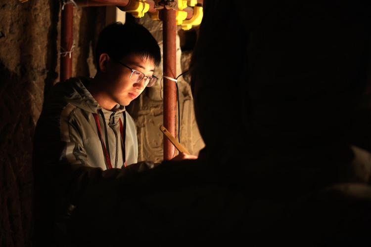 2023年4月25日,敦煌研究院文物数字化保护团队图像采集人员熊业腾在洞窟内调试设备,准备采集壁画图像。30多年前,敦煌研究院便尝试以数字技术让古老石窟“芳华永驻”。2016年,“数字敦煌”资源库上线,首次向全球免费共享30个敦煌石窟的高清图像和全景漫游,用户足不出户就能欣赏到高清的敦煌文化数字资源,目前访问用户遍布全球78个国家,累计访问量超过2000万次。