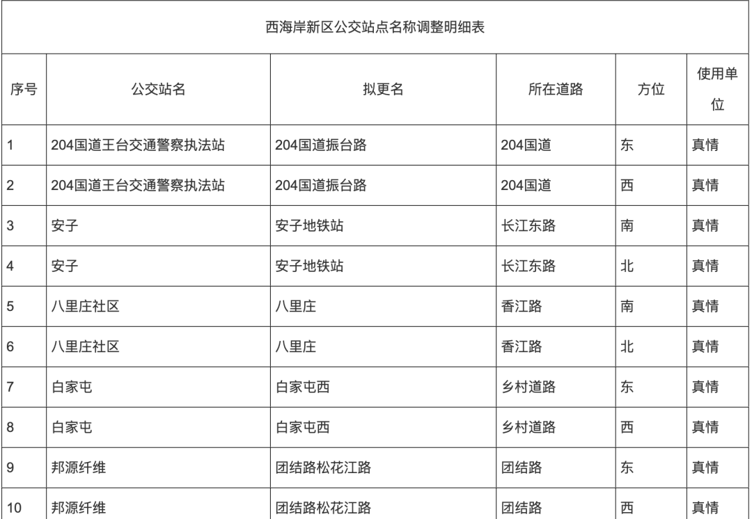 依据《城市公共汽电车客运服务规范》相关规定,参照青岛市《公交站点命名及调整规范》,结合新区实际并充分考虑市民合理化意见建议,年底前开始陆续对全区1488处公交站点实施更名。