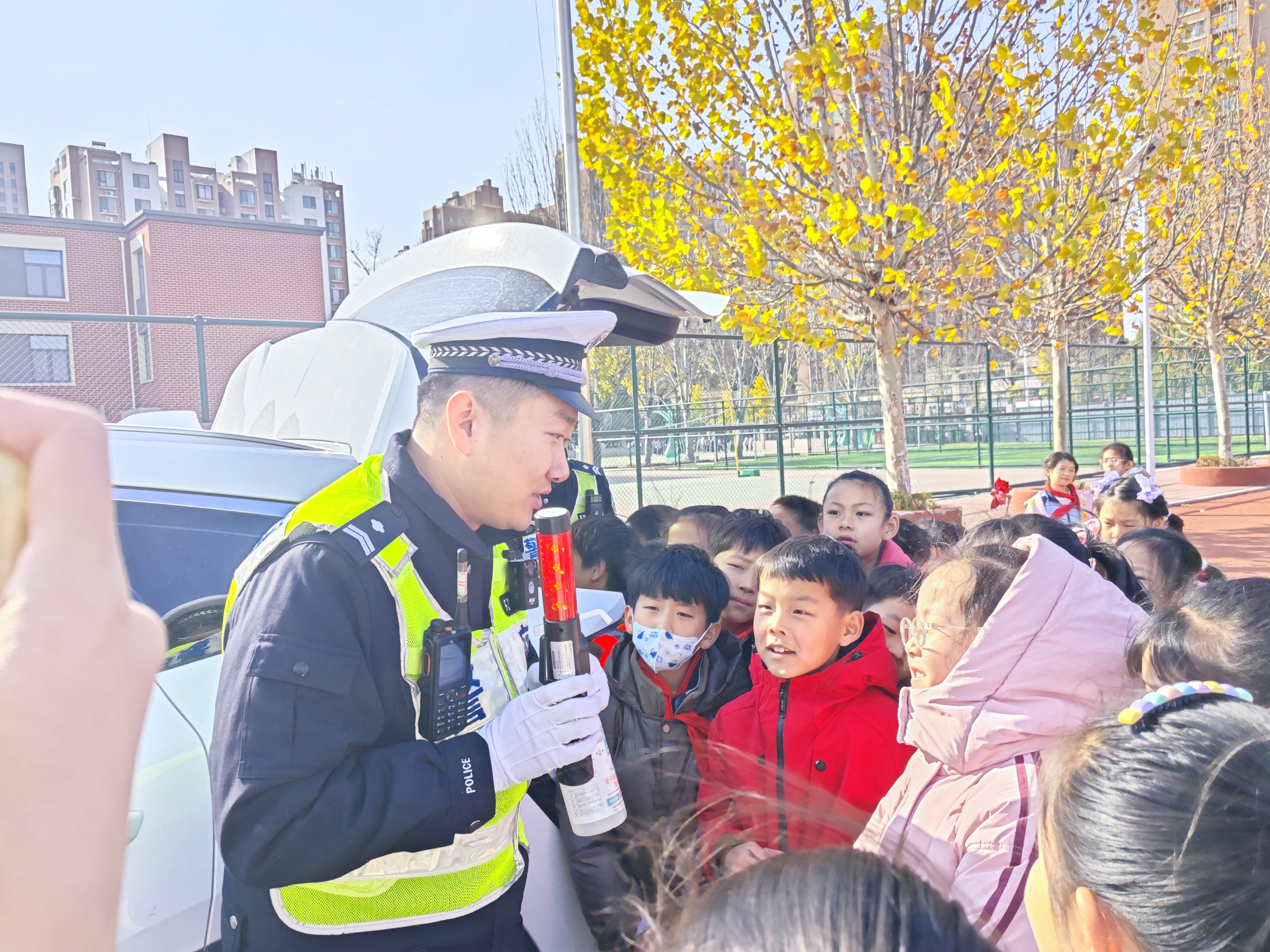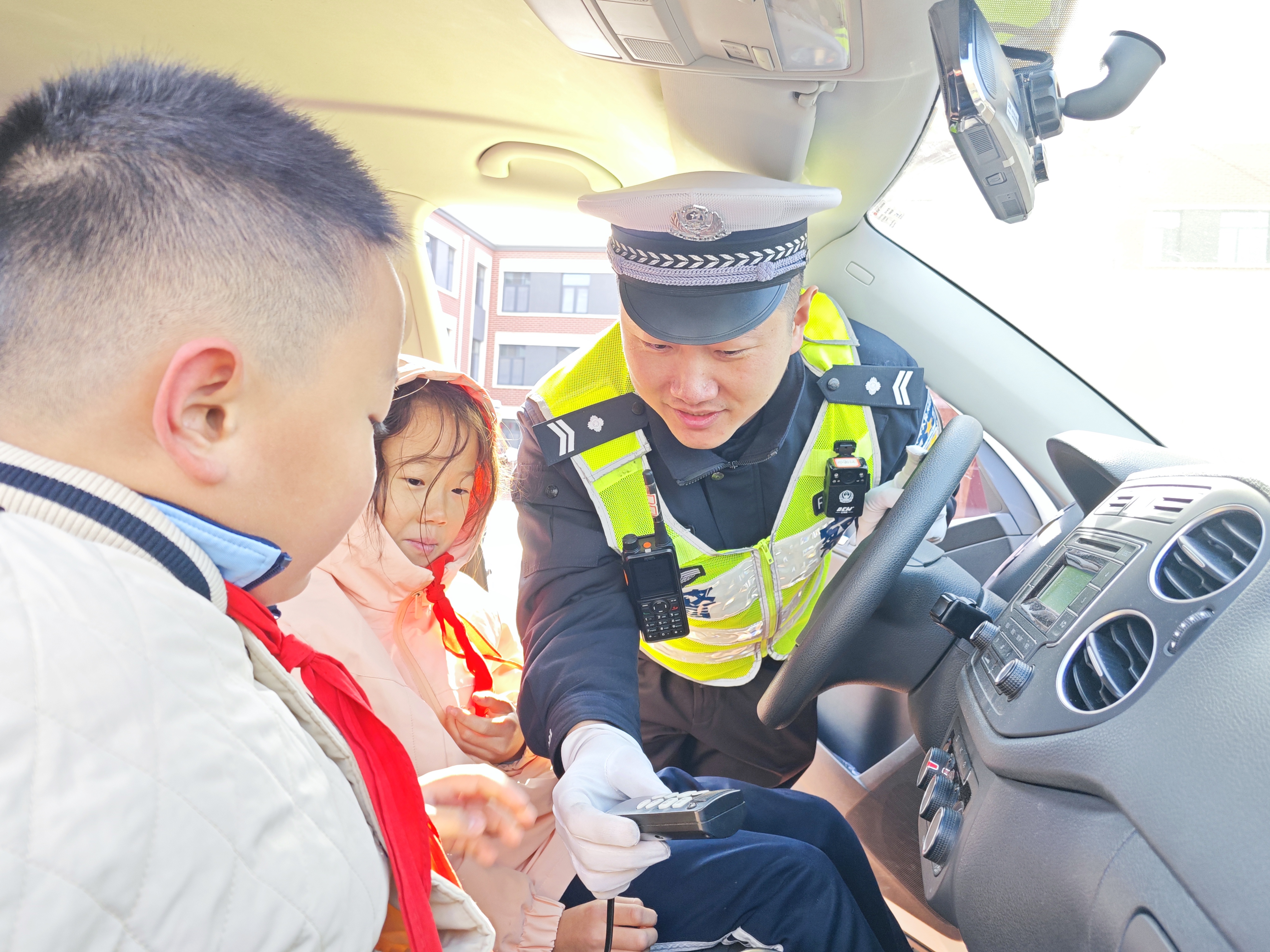 针对少年儿童出行安全需求,室内课堂上,民警结合儿童认知特点,通过趣味动画展播、互动问答闯关等形式,生动讲解过马路“一停二看三通过”、安全乘车“系好安全带”等核心知识,引导学生养成文明出行好习惯;室外体验环节,警车、铁骑装备整齐列阵,民警现场演示警笛调控、酒精测试仪操作流程,邀请学生近距离观察装备细节、亲手触摸体验,以“沉浸式+互动式”模式让孩子们在轻松氛围中直观感受交警装备功能,深化交通安全认知,带动家庭共同重视交通安全。