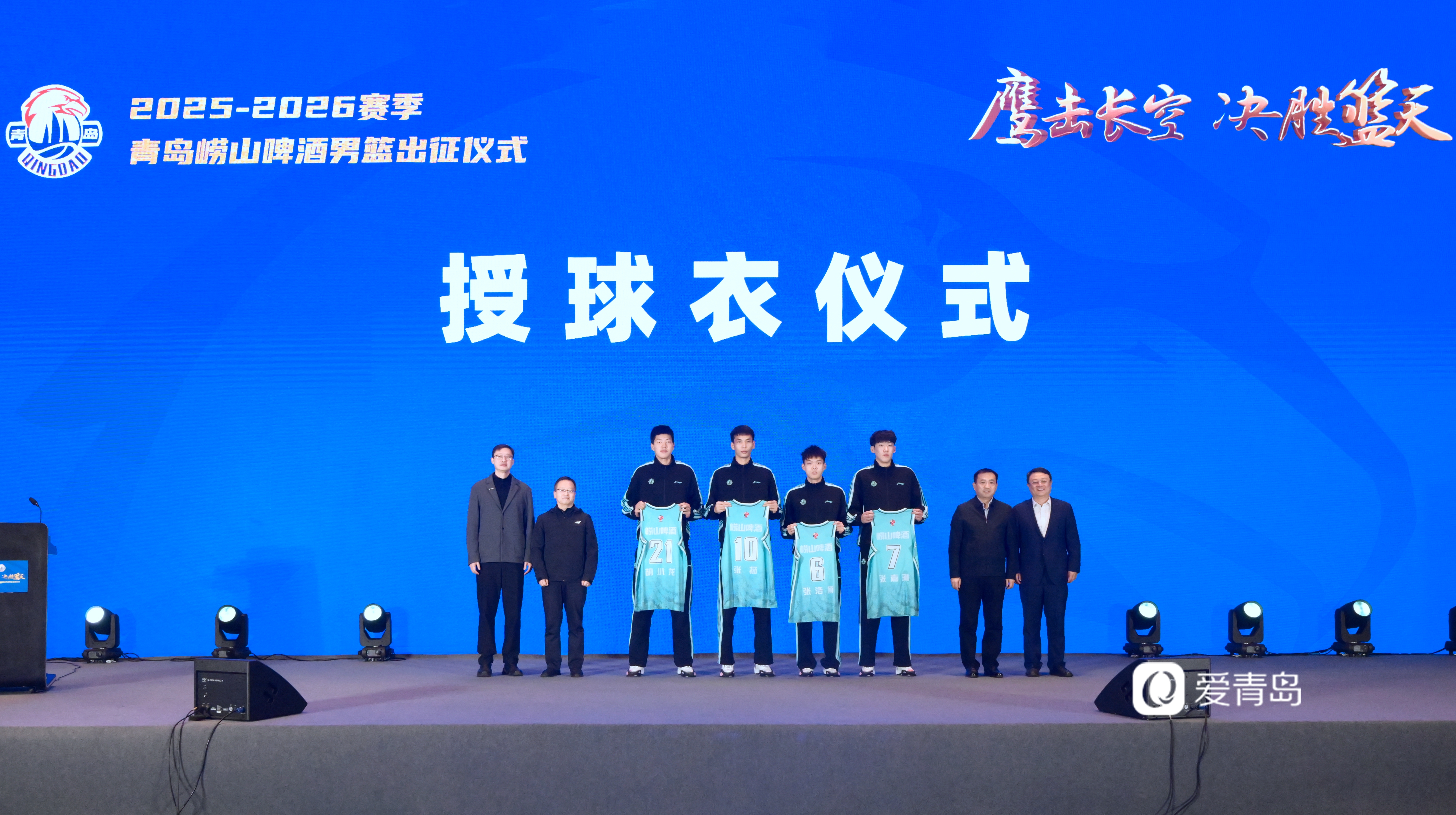 11月28日上午,青岛崂山啤酒男篮2025-2026赛季出征仪式在青岛海天大酒店举行。满载希望与祝福,青岛崂山啤酒男篮即将踏上新征程。