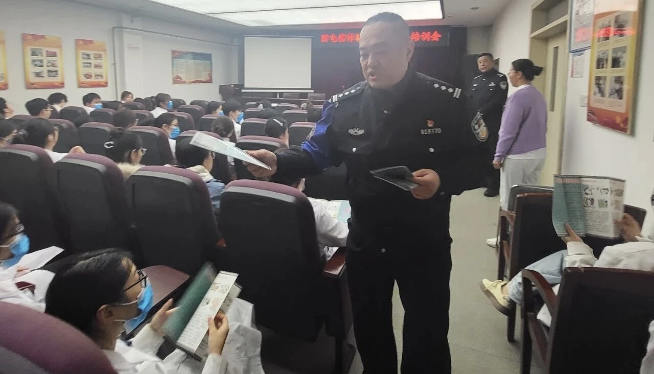 “前几天有人打电话说我的医保账户异常,让我转账‘解冻’,这是不是诈骗?”活动现场,一名老年患者的提问,成为反诈民警开启“反诈课堂”的生动切入点。当天,民警携带精心整理的涉医诈骗案例汇编、图文宣传手册等资料,在医院会议室为近百名医护人员、就诊患者及家属带来了一场针对性极强的反诈宣讲。