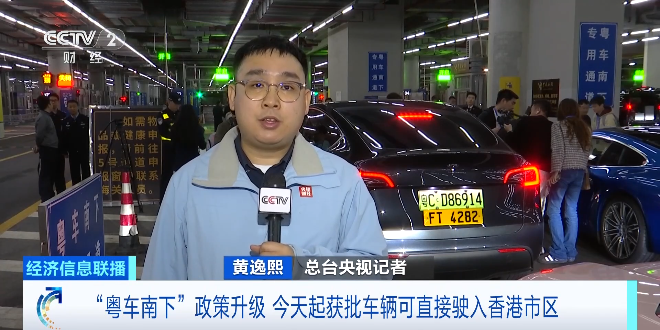 总台央视记者 黄逸熙:22日晚11点58分,在港珠澳大桥珠海公路口岸的出境车道查验场,正在排队等待的就是本次首批成功获准进入香港市区的广东牌照车辆。我们发现这些车辆同时悬挂了广东和香港两地机动车号牌,并按规定购买香港车辆保险。23日零时一到,他们从这里通关,经港珠澳大桥驶入香港,这标志着“粤车南下”进入香港市区的政策正式落地实施。