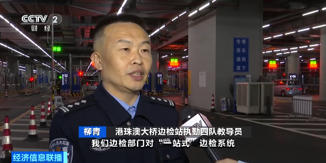 港珠澳大桥边检站执勤四队教导员 柳青:为保障“粤车南下”车辆顺畅进入香港市区,我们边检部门对“一站式”边检系统进行适应性改造,对证件读取、车辆查验等流程进行改造升级,并安排专人专岗提供咨询引导服务,有效提升通关体验。