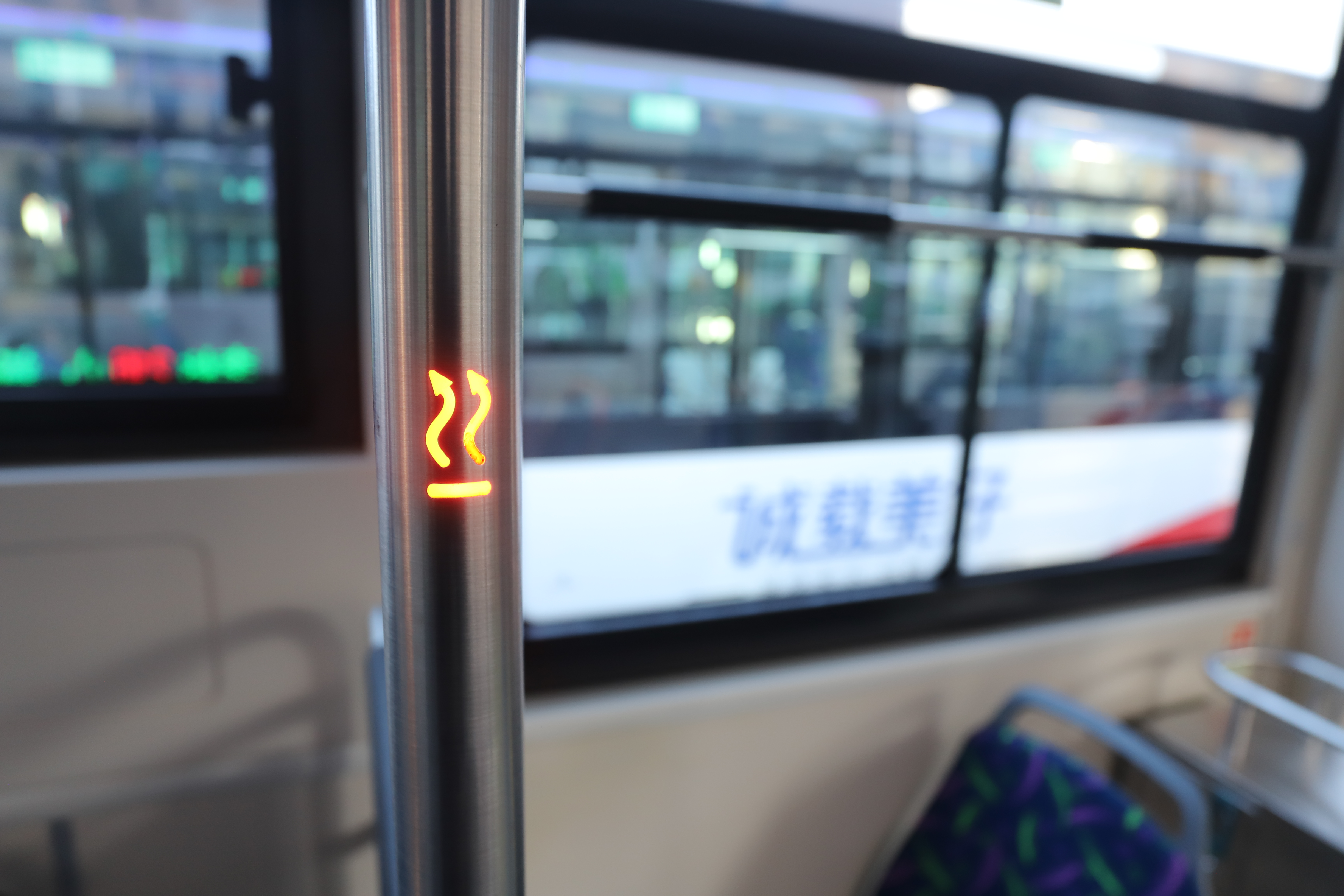 在便民服务方面,新车充分考虑特殊乘客群体需求,站立区域实现“0”台阶全平地板设计,极大方便了老年人、儿童、残疾人等特殊群体上下车,让出行更具温度。同时,车辆还配备了轮椅专用区、加热扶手和USB充电口等多项人性化设施,从细节上照顾不同乘客的需求。乘坐114路的王先生告诉记者:“新车的座椅明显变软了,坐着很舒服,而且车辆噪音也很低,起步停车也更加平稳了。”此外,为助力实现响应式公交运营,新车还安装了下车提示器,全面满足不同位置乘客的下车摁铃需求,精准匹配市民出行节奏。值得注意的是,原车右侧反光镜背面配备电子线路显示屏,在进站过程中,能让乘客清晰、及时识别车辆线路号,便于提前选定所乘车辆,减少候车时间。