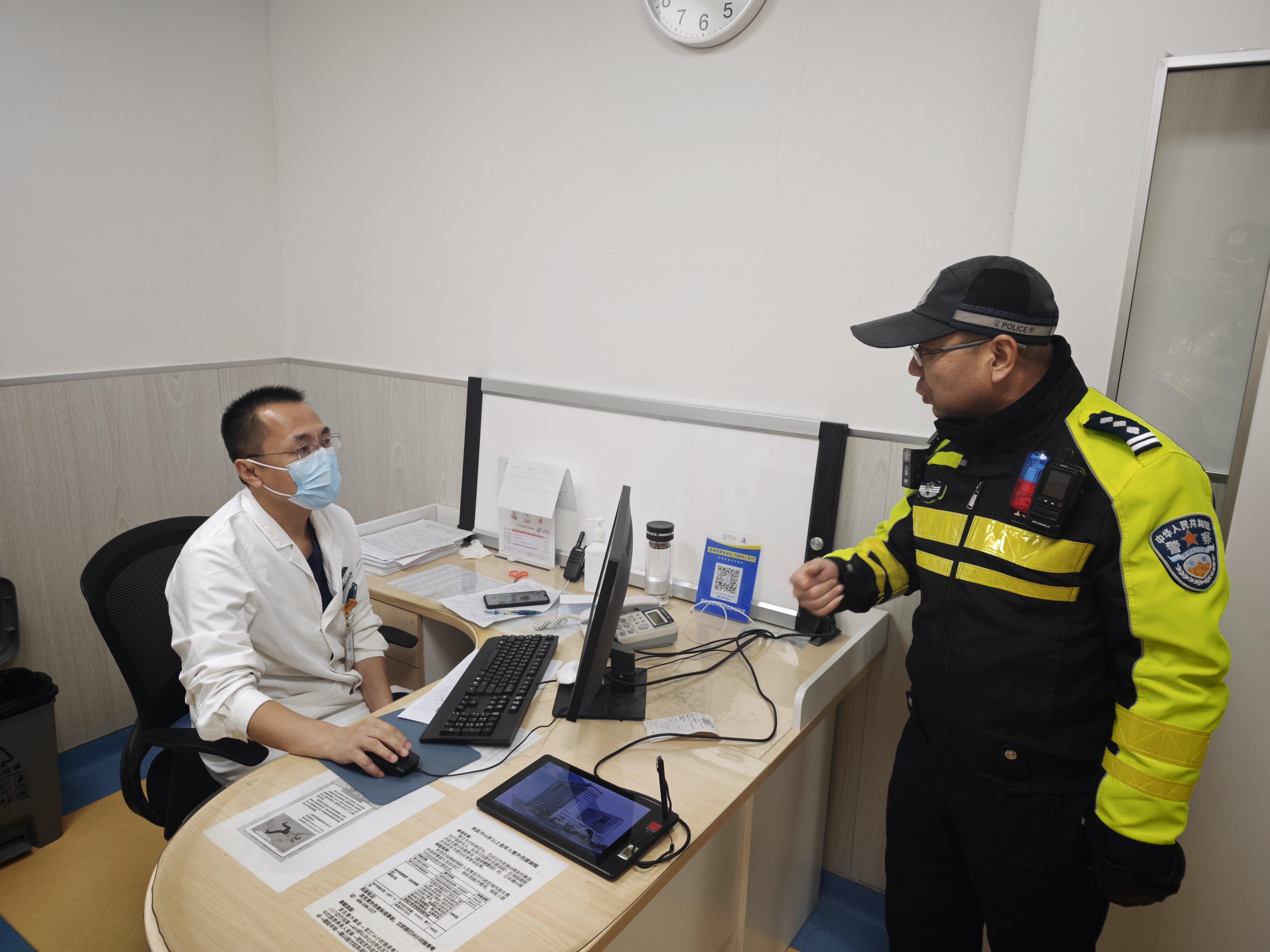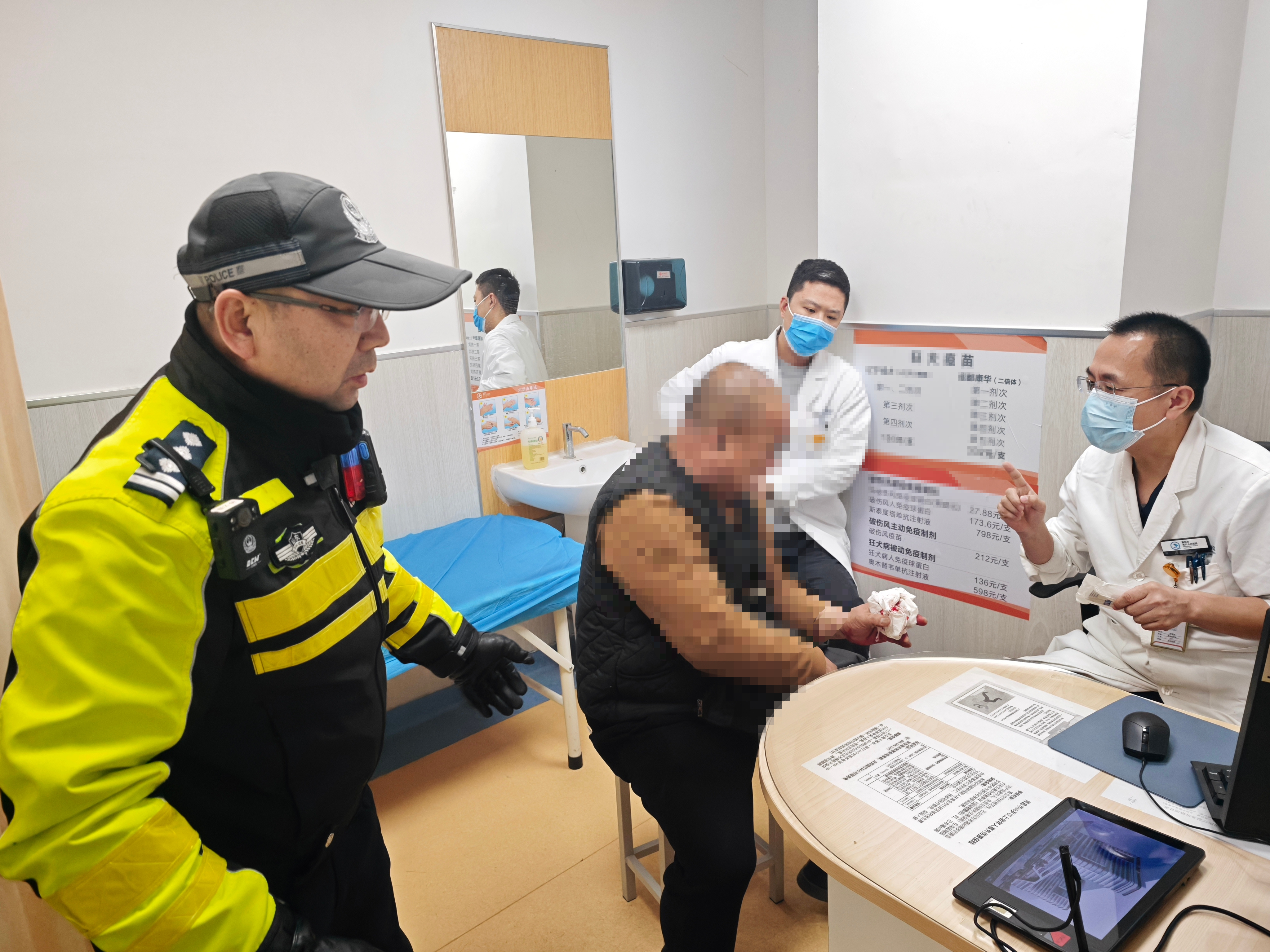 到达医院后,民警孙文涛帮忙将伤者送进急诊室,主动向医护人员了解伤情与治疗方案,确认伤者可及时接受手术后,才放心离开。