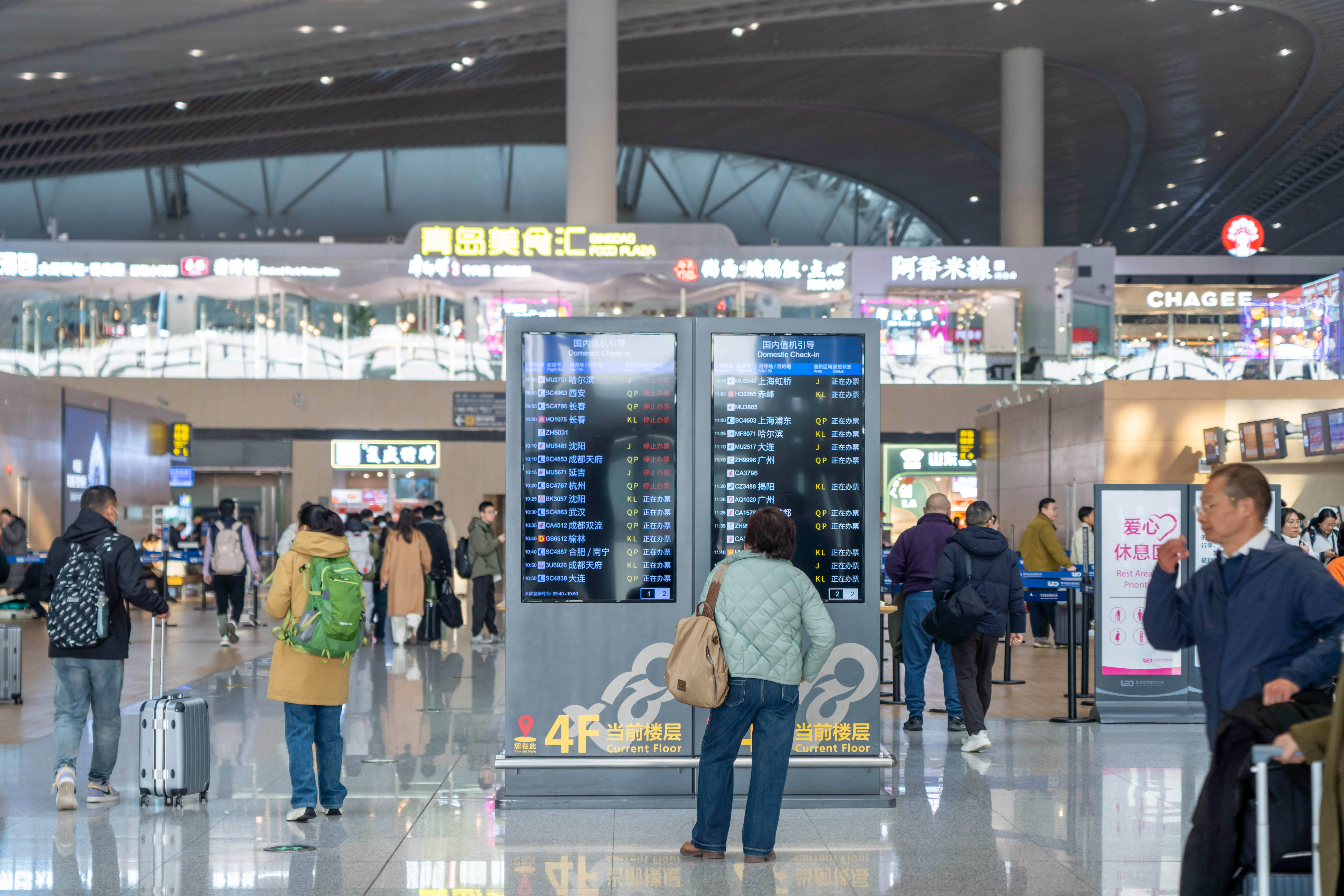 从出行方向看,国内航线方面,哈尔滨、长春等东北冰雪目的地,以及海口、三亚、昆明、南宁等南方城市热度较高;国际航线中,前往首尔、釜山、吉隆坡、新加坡等地区航班保持较高客座率。