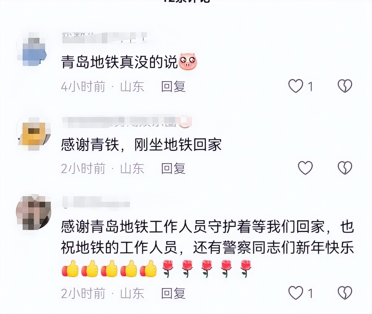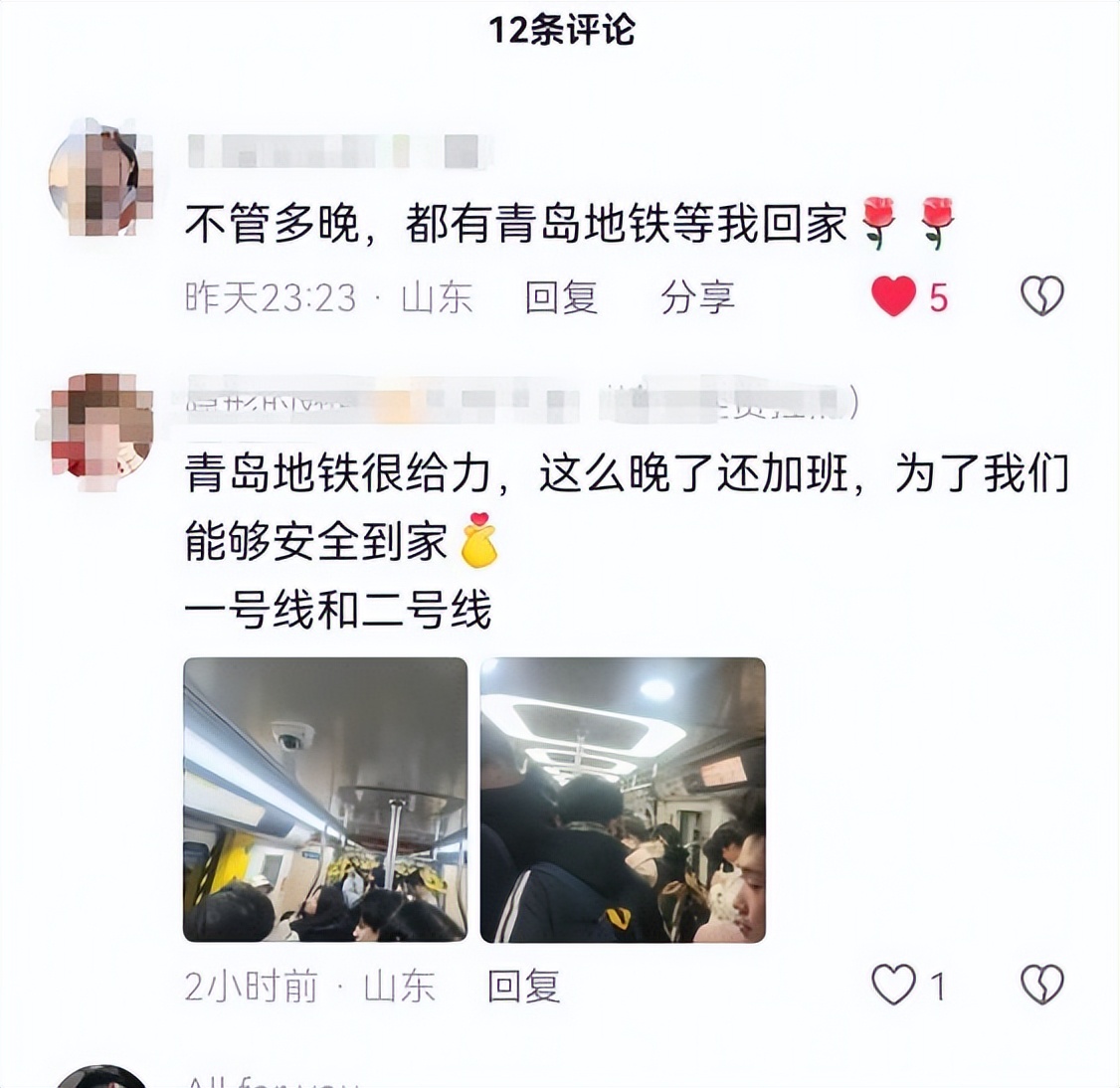这些朴素的感动,迅速汇聚成网络暖流。社交平台上,“感谢青岛地铁延时运营”“感谢青岛地铁让我有家可归”的称赞不绝于耳,网友的好评与点赞,一屏早已装不下。