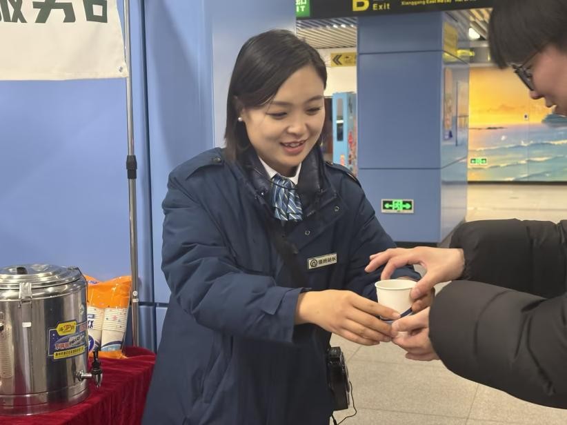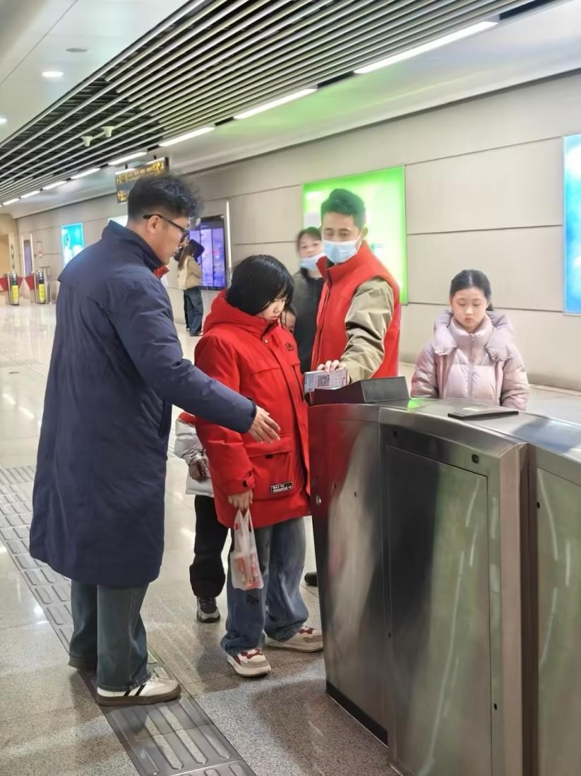车站出入口处,当返程高峰来临,工作人员坚守在寒风凛冽的露天路口,引导乘客快速通行,一遍遍解释、一次次抬起冻得发僵的手臂,在关键的路口为乘客指明最清晰的路线。
