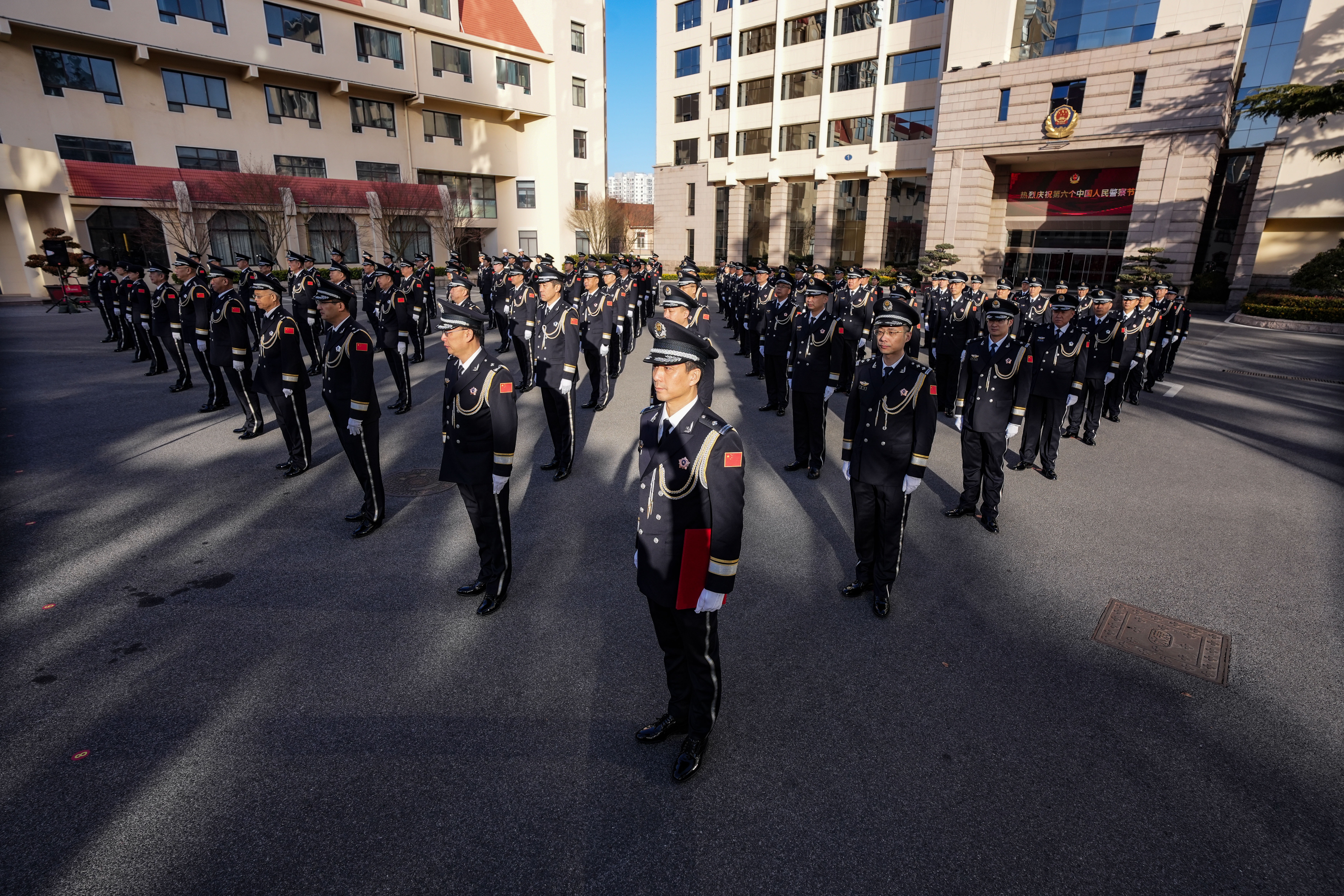 “我是中国人民警察,我宣誓:坚决拥护中国共产党的绝对领导,矢志献身崇高的人民公安事业,对党忠诚、服务人民、执法公正、纪律严明,为捍卫政治安全、维护社会安定、保障人民安宁而英勇奋斗!”在一等功荣立者、黄岛分局一级警长简齐恒同志的带领下,全体民警辅警代表重温人民警察誓词,铮铮誓言、字字千钧,表达了对党绝对忠诚,对公安事业无限热爱,展示了青岛公安队伍新征程新气象、新担当新作为。
