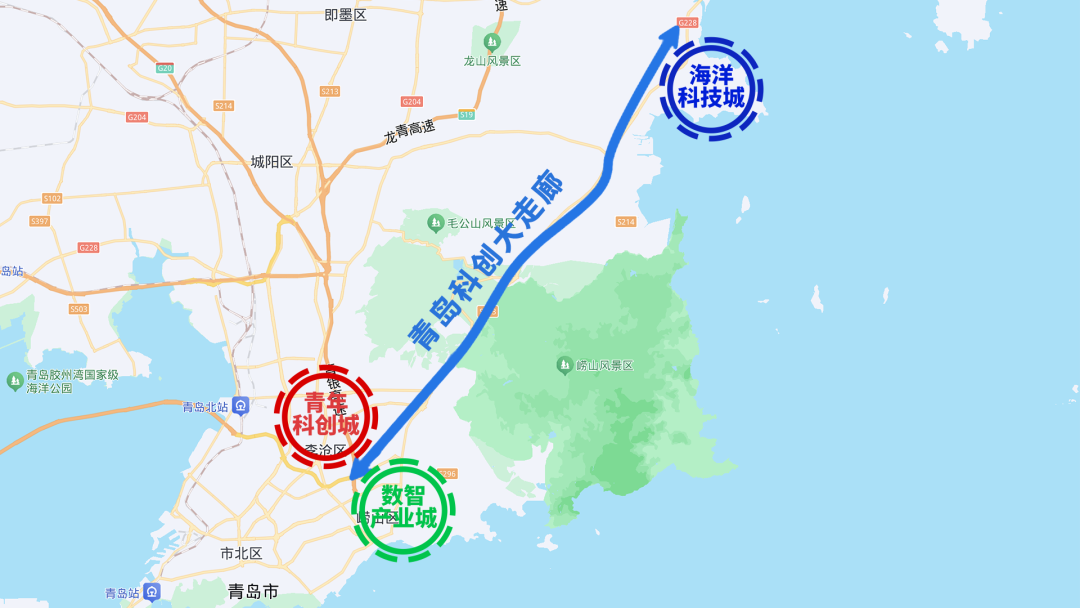 科创大走廊以滨海大道为主轴,南北向长53公里,规划面积约190平方公里,串联起崂山区、李沧区和青岛蓝谷,地铁贯通、路网完善,山、海、湾、河、岛、泉、滩自然风貌特色凸显。