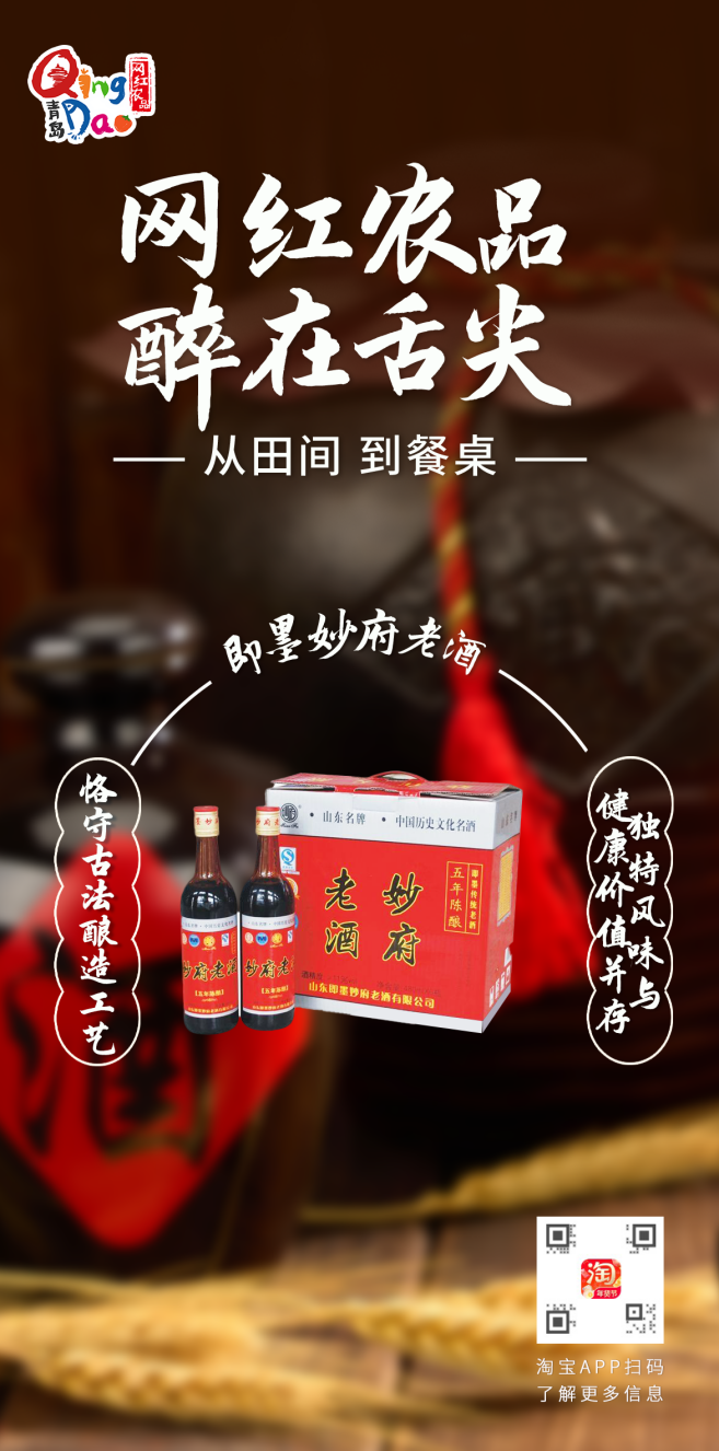 即墨妙府老酒传承了四千年酿酒历史和三千年"古遗六法"工艺,以北方大黄米、陈伏麦曲和崂山麦饭石矿泉水为原料,其酒液红褐晶莹,口感醇厚爽口,含多种氨基酸和微量元素,有舒筋活血的功效。曾获青岛国际版权交易博览会金奖,遵循的"古遗六法"酿造工艺是省级非物质文化遗产,"自加热黄酒"入选了2023"山东手造·优选100"产品名单。