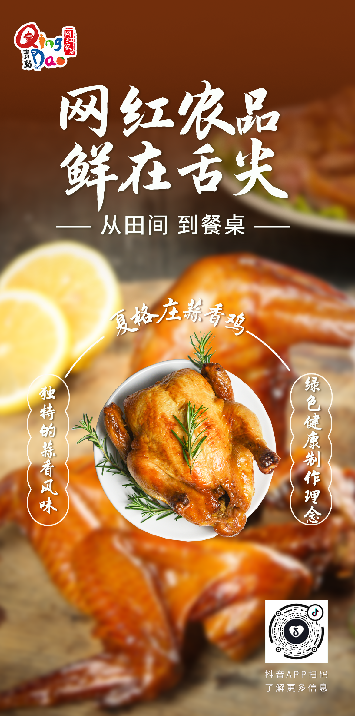 夏格庄蒜香鸡选用肉质紧实的芦花鸡或白公鸡,辅以大蒜、竹叶、胡萝卜和香菜等食材进行腌制,生鸡腌制十小时以上,以确保充分入味。腌制完毕后,采用优质木炭慢火烘烤一个多小时,烤出的鸡肉外皮焦香,内里软嫩多汁,蒜香、竹香与鸡肉的鲜香融为一体。其加工技艺在2023年被列入莱西市非物质文化遗产保护品牌。2025年,成功获评 "青岛非遗美食百佳奖" 。
