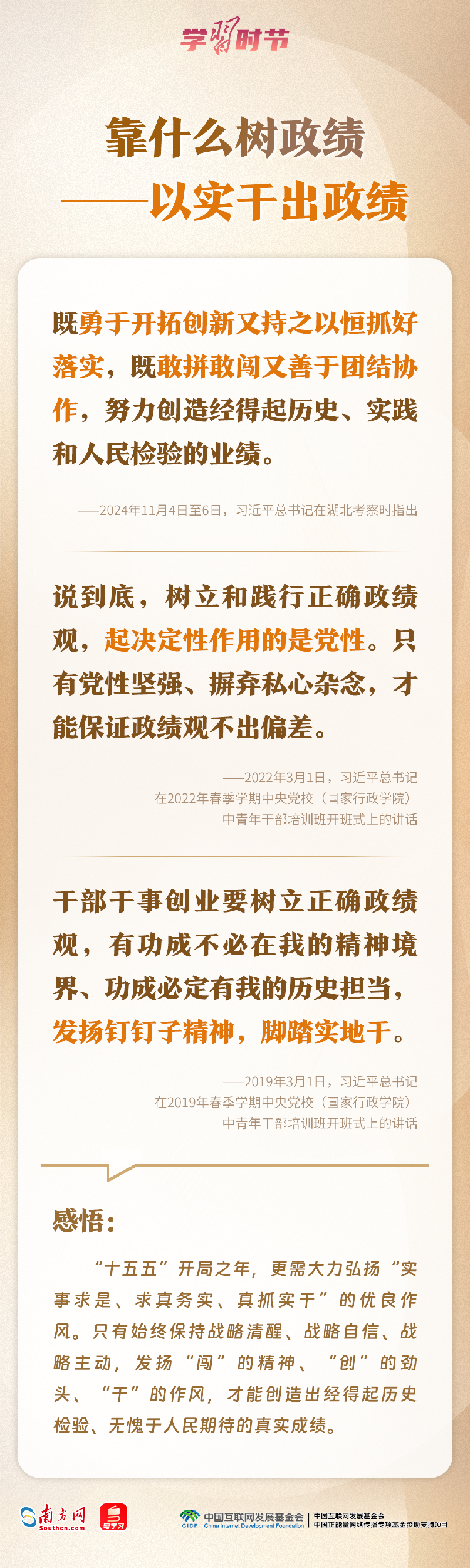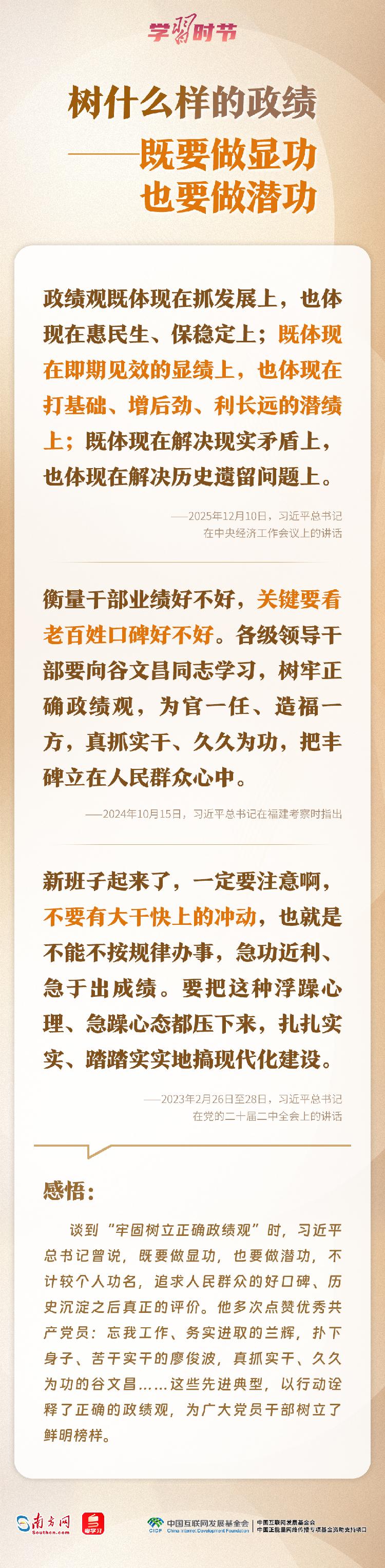 今年是“十五五”开局之年,如何确保开好局、起好步?近日,习近平总书记在省部级主要领导干部学习贯彻党的二十届四中全会精神专题研讨班开班式上这样强调,要树立和践行正确政绩观,坚持从实际出发、按规律办事,自觉为人民出政绩、以实干出政绩。