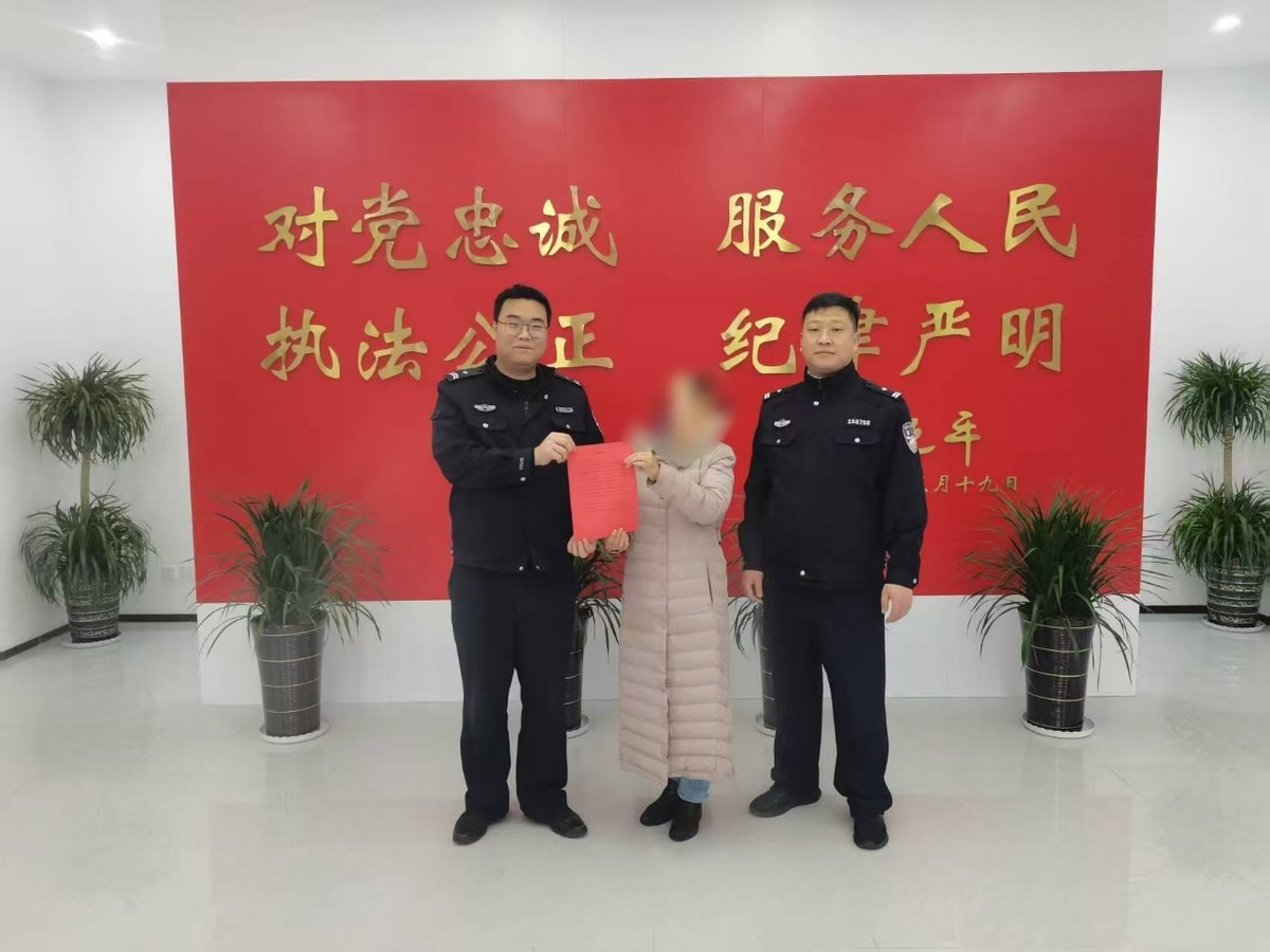 1月19日,刘女士专程来到派出所,送来一封手写感谢信。信中她由衷写道:“我不知道你是谁,却知道你为了谁,感谢埠东派出所的民警们急我所急,帮我妥善解决了遭遇诈骗的问题,避免了经济损失”。