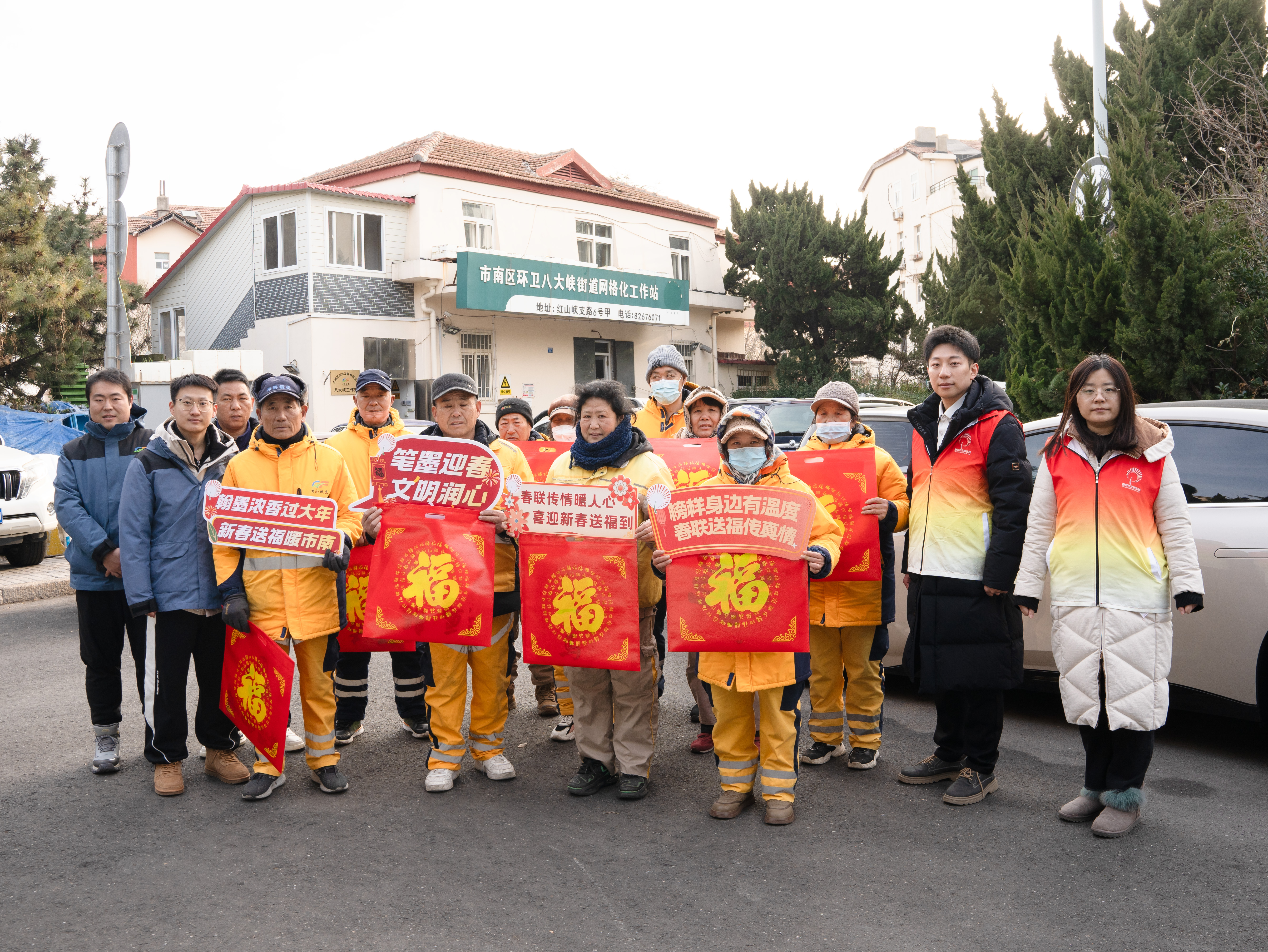 笔墨翻飞年味浓,市南区新时代文明实践中心内,书法家们挥毫泼墨,一幅幅彰显模范事迹、承载新年憧憬的春联福字跃然纸上,志愿者们默契配合、迅速行动,将饱含深情的春联与福字细心分装,带着满满的敬意与关怀,兵分多路奔赴各个点位。无论是道德模范、身边好人的温馨家中,还是八大峡环卫站等城市建设者的工作岗位,送“福”队伍的到来都瞬间点燃了浓浓的年味儿与暖意。志愿者们与先进代表、环卫工人拉家常、话新春,送上最真挚的节日问候,更衷心感谢他们用日复一日的坚守与无私奉献,为城市发展与文明建设注入的强大力量。