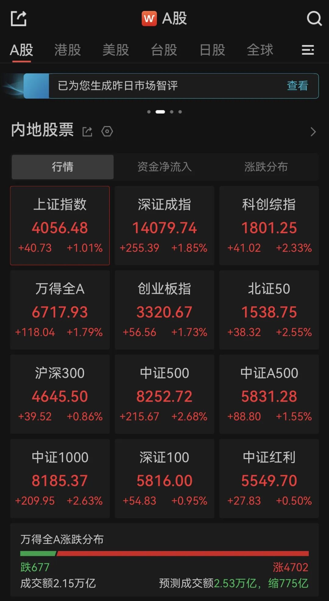 A股三大指数集体涨超1%