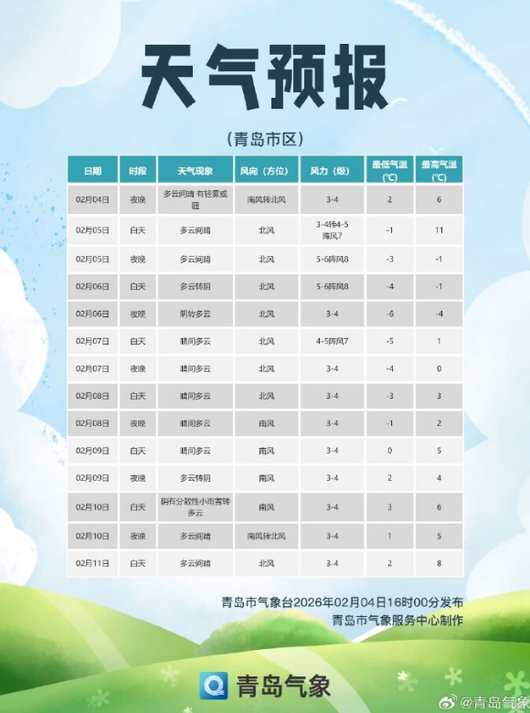 青岛市气象台4日16时发布:
