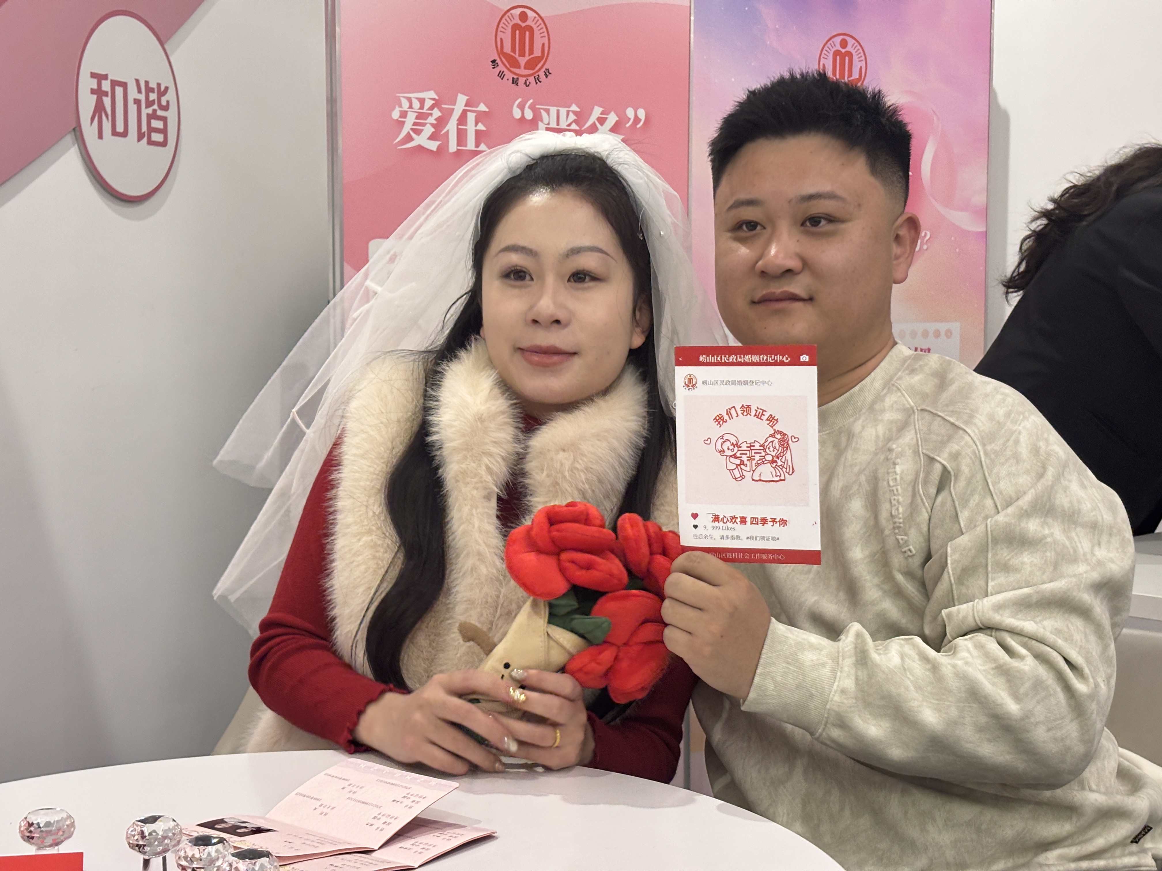 活动现场同步开展的"爱在四季"集章打卡活动也备受新人欢迎。引导新人完成互动任务,集齐象征婚姻四季的纪念印章。许多新人表示,这种寓教于乐的形式让他们在轻松愉快的氛围中,自然地开始思考未来婚姻生活的各个方面。