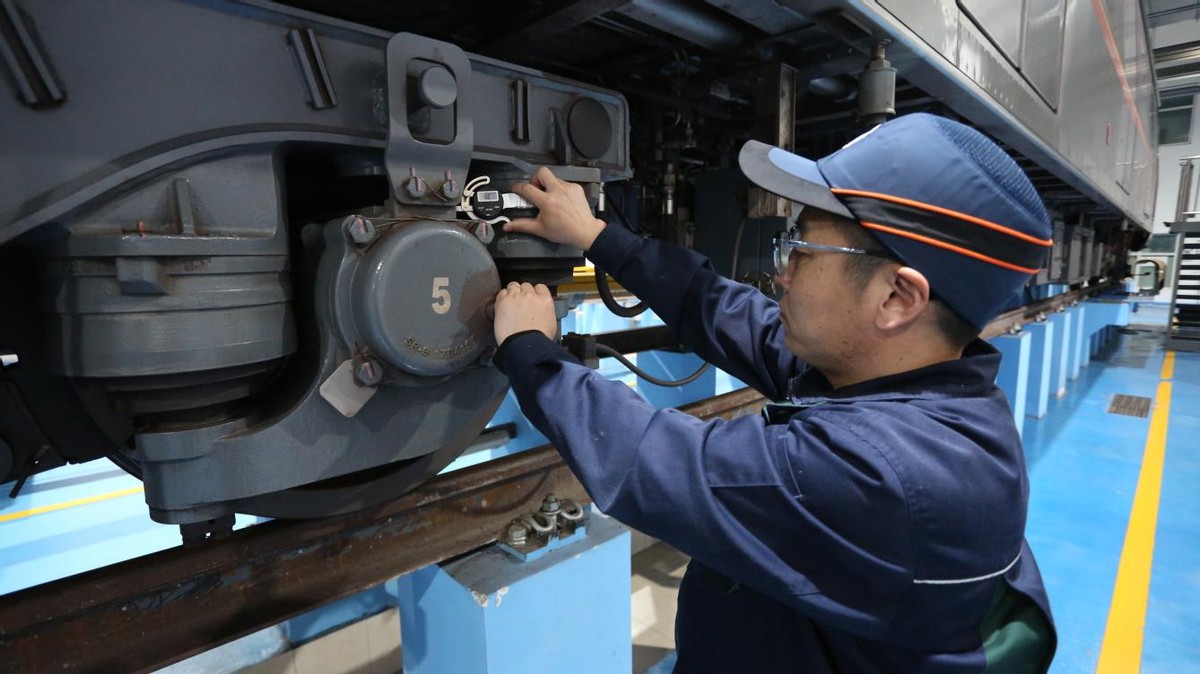QMG青岛广电2月21日讯  春节假期,每个人的脸上都洋溢着团圆的喜悦。在辽阳东车辆基地运用库内,车辆检修工班长刘世宝已带领班组员工开始了新一天的检修工作。