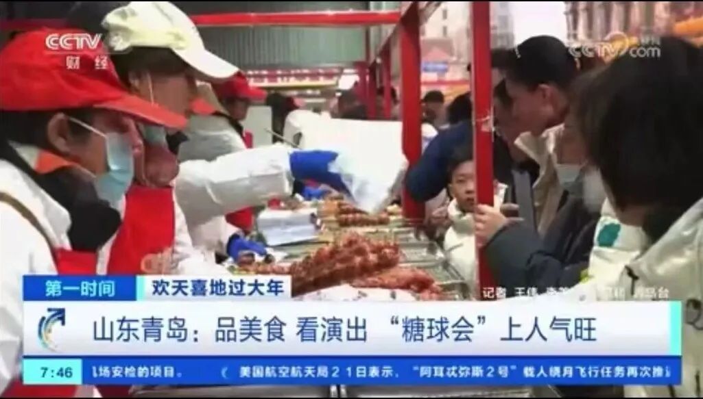 在山东青岛市北的大鲍岛文化休闲街区,象征着团圆红火的糖球及各地风味小吃让市民游客大饱口福,民俗巡游、舞龙舞狮等特色节目轮番上演。“最地道最有年味,这种新春庙会看着真的特别特别开心。”山东青岛市民说道。